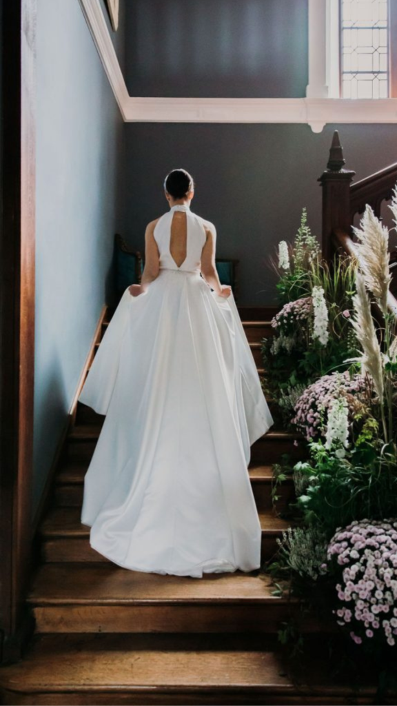 Think detachable overskirts, trains, sleeves, or bows. Elements that add drama for the ceremony and photographs can then be removed for the evening. This means you can enjoy a statement silhouette when it matters most, and later transition into something lighter and easier to move in without changing dresses entirely.